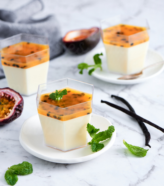 Light and creamy vanilla bean infused panna cotta. Topped with a passionfruit layer for that pleasantly tangy and tart taste.